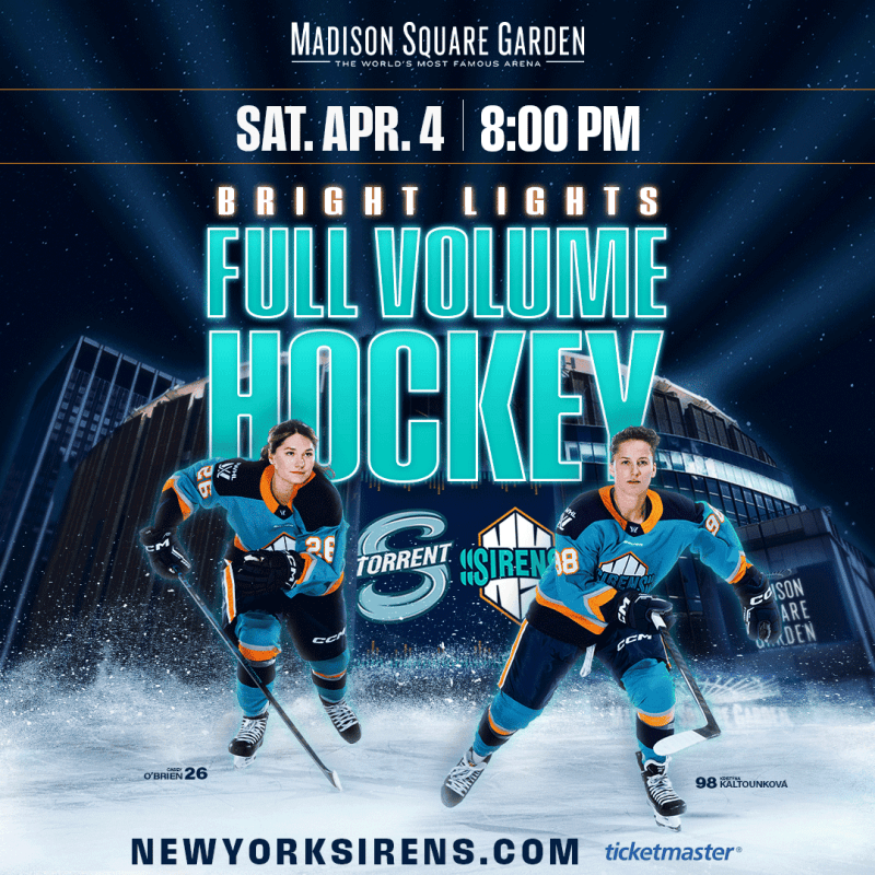 “Madison Square Garden has a storied women’s sports history, and on April 4, the New York Sirens will add their own chapter at The World’s Most Famous Arena, as fans get the chance to attend professional women’s hockey at the Garden for the first time,” Sirens GM Pascal Daoust said. “Playing at the Garden is an honor and sharing it with our dedicated fans will make it even more special.’